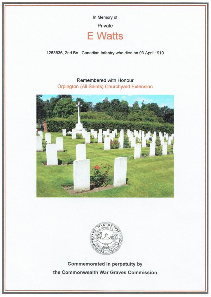 | Cemetery: | Ontario Cemetery (All Saints) Parish Churchyard Orpington Kent England | ||||||