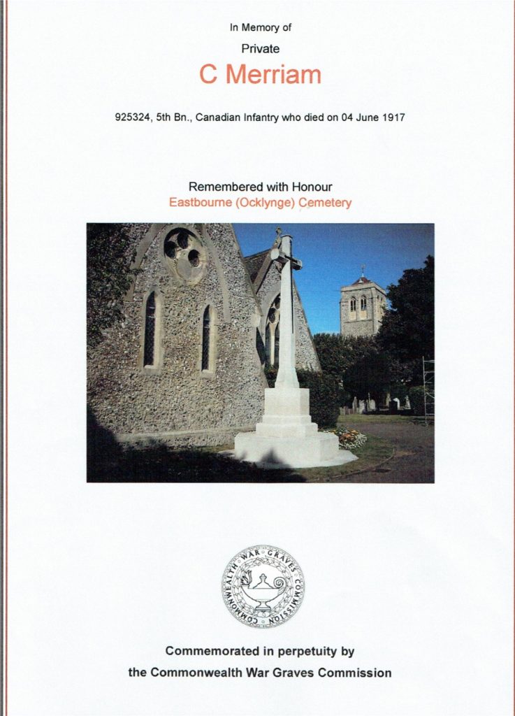 Father: | William A. Merriam , Ogema Sask . | ||||||