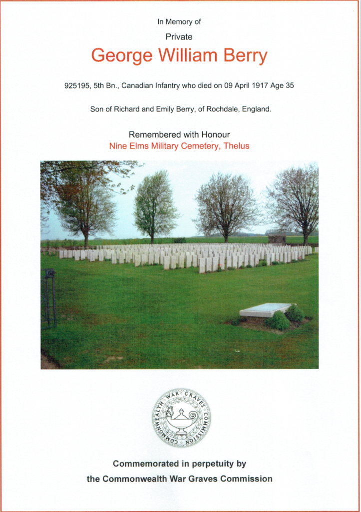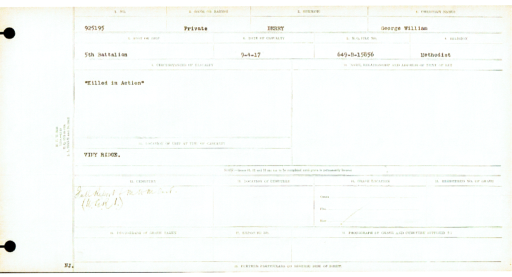 Killed in Action at Vimy Ridge April 09, 1917 . |