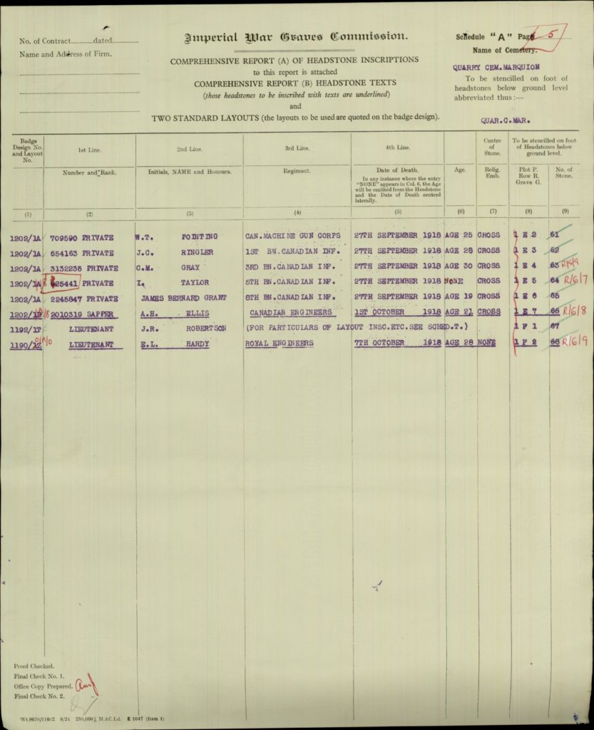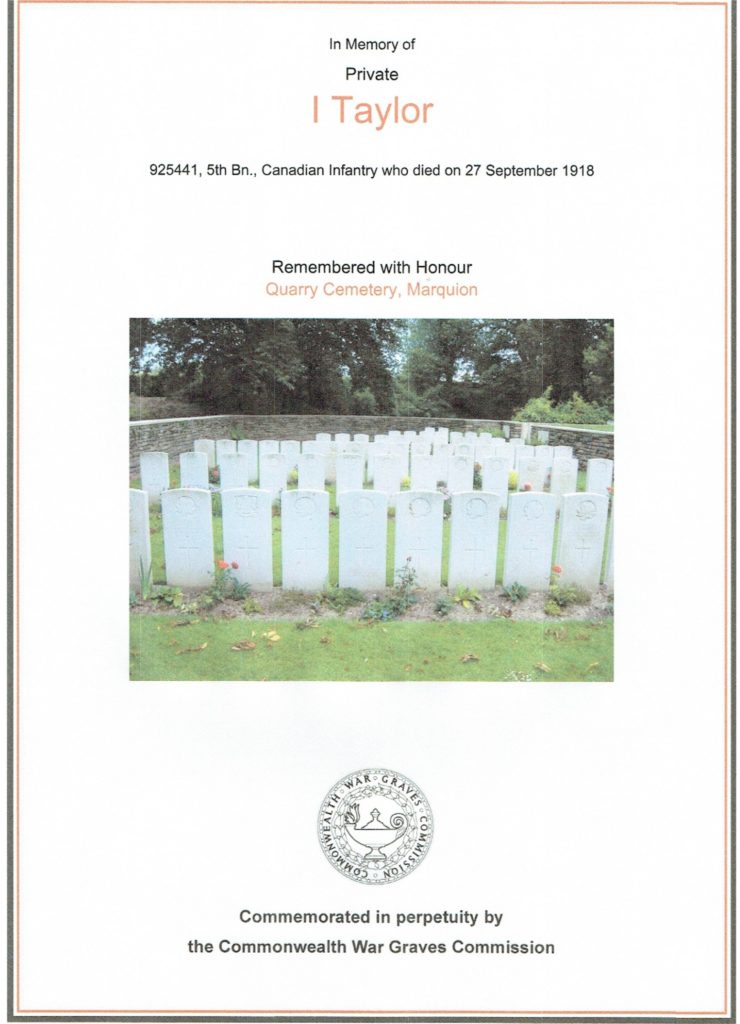 | Cemetery: | Quarry Cemetery, Marquion, Pas de Calais, France | ||||||