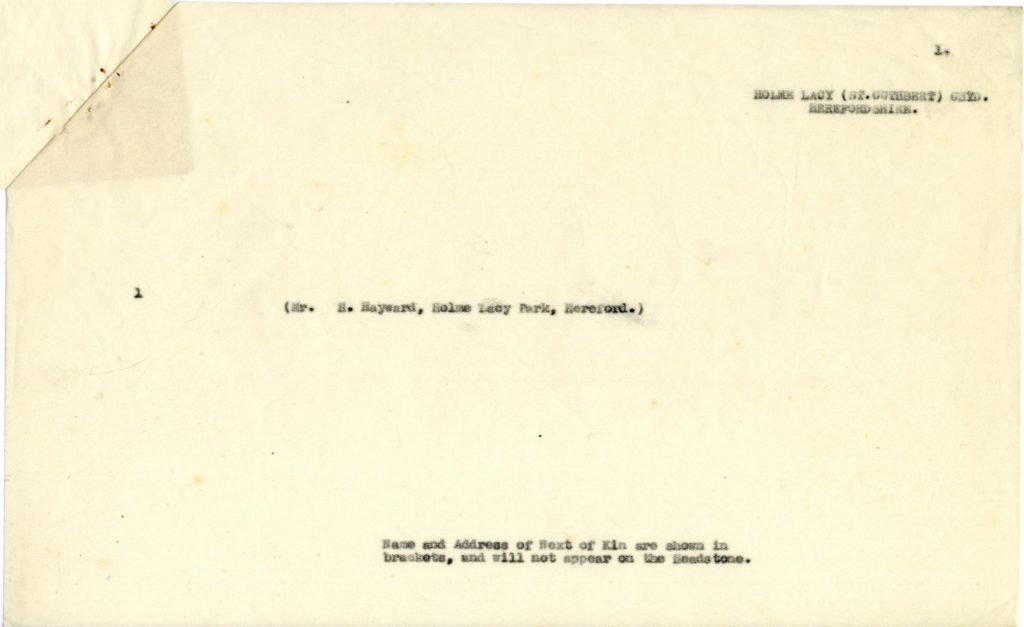 Cemetery: | Holme Lacey Churchyard, Herefordshire, UK | ||||||