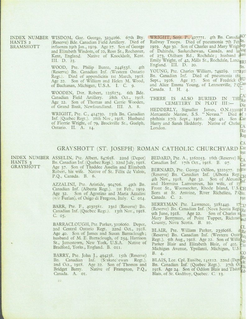 | Father: | Charles Wright , Dahinda, Sask. | ||||||