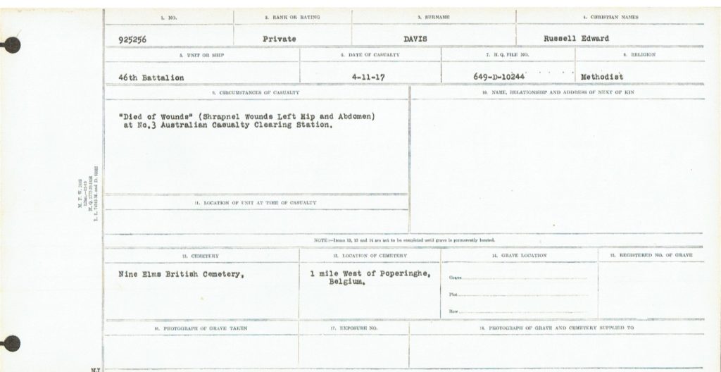 | Date of Death: | Died of wounds 4th November , 1917 | ||||||