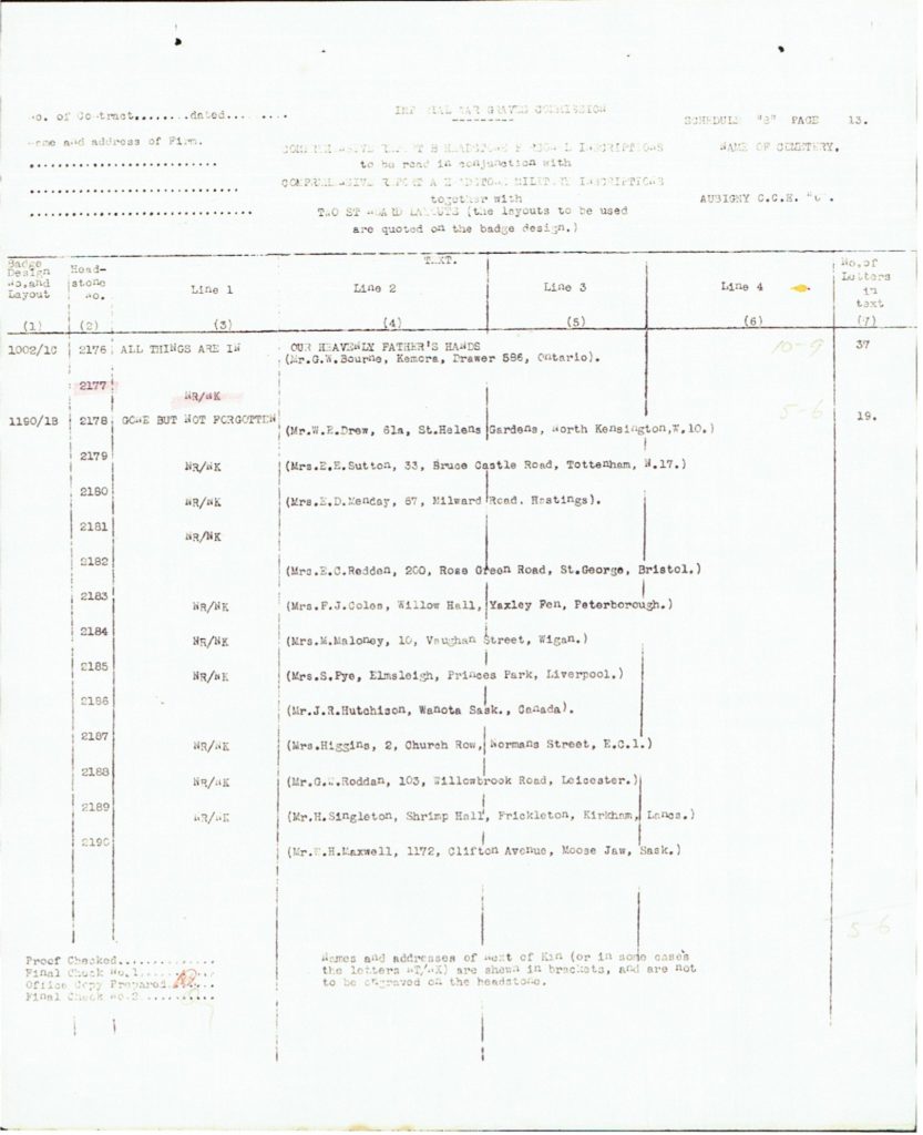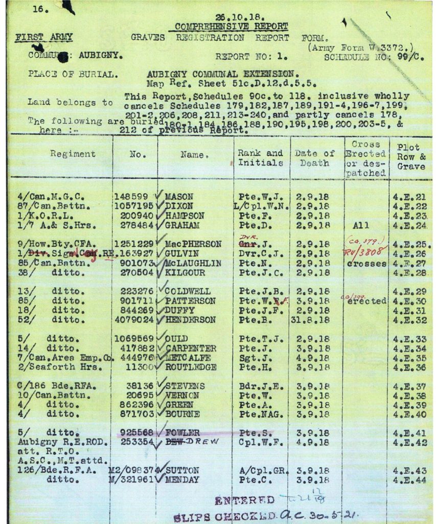 | Cemetery: | Aubigny Communal Cemetery Extension, Pas de Calais, France (Grave Ref. IV.E.41) | ||||||