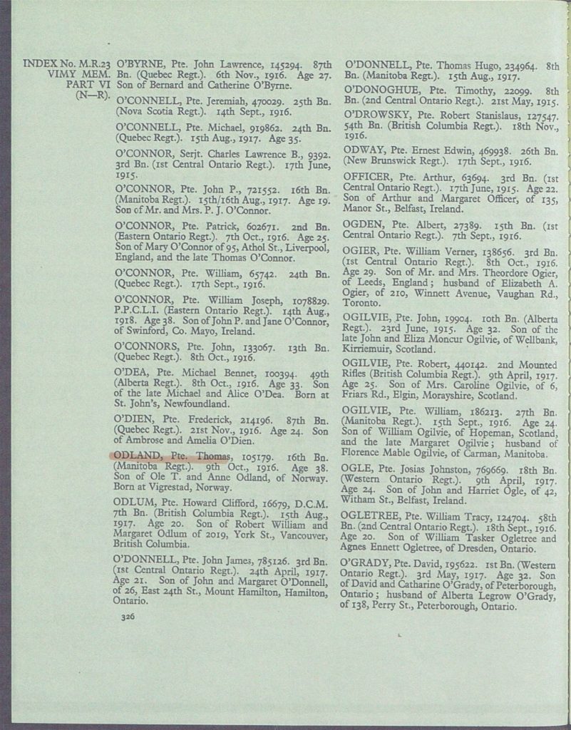 | Cemetery: | Vimy (Ridge) Memorial, Pas deCalais, France | ||||||