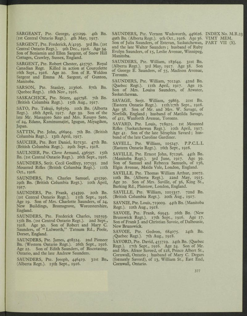 | Cemetery: | Vimy (Ridge) Memorial, Pas deCalais, France | ||||||